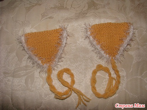 И под конец ушек вышла с 3 изн. на 2 (провязала одну из. лицевых -изнаночной).